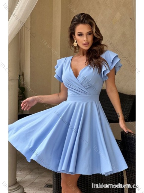 Šaty elegantní krátký rukáv dámské (34-42) POLSKÁ MÓDA PMLBC24281-08 světle modrá 36