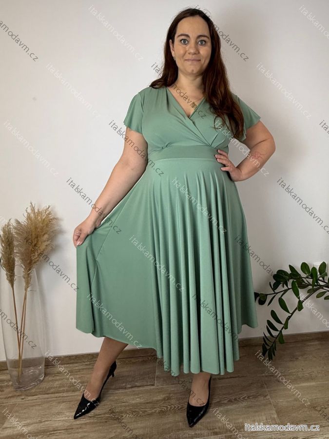Šaty letné elegantní s krátkým rukávem dámske nadrozmer TASA (44/46/48 ONE SIZE) TALIANSKA MÓDA IM4260028/DUR 44/46/48 staromintová