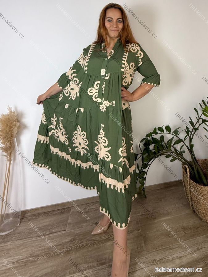 Šaty elegantní letní 3/4 dlouhý rukáv dámské nadrozměr LUDMILA (50/52/54 ONE SIZE) ITALSKÁ MÓDA IMPLI243735