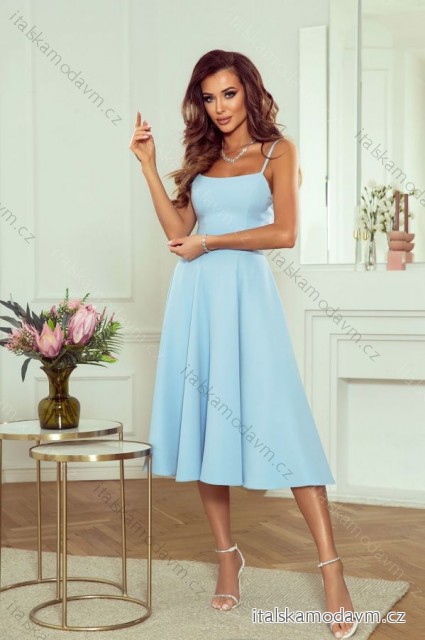 Šaty elegantní na ramínka dámské (34-40) POLSKÁ MÓDA PMLWD24CINDYMIDI-1 světle modrá 40