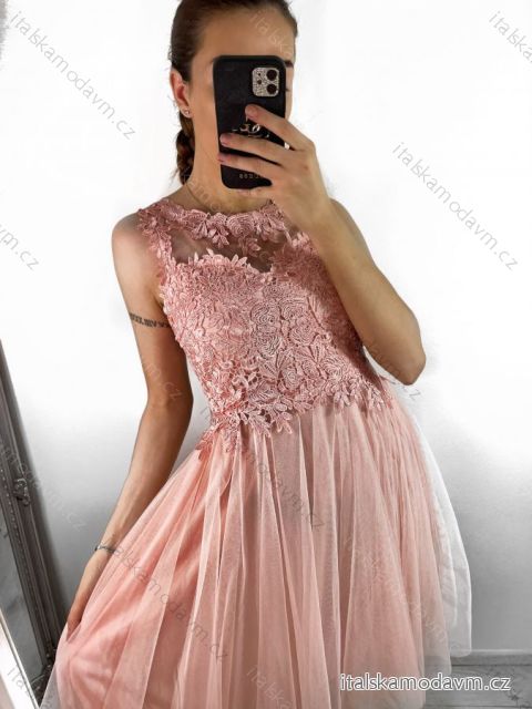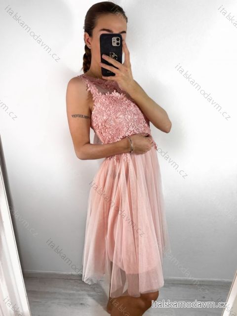 Šaty elegantní plesové bez rukávu krajka dámské (uni s/m) ITALSKá MóDA IM921BELLA/DU S/M světle růžová