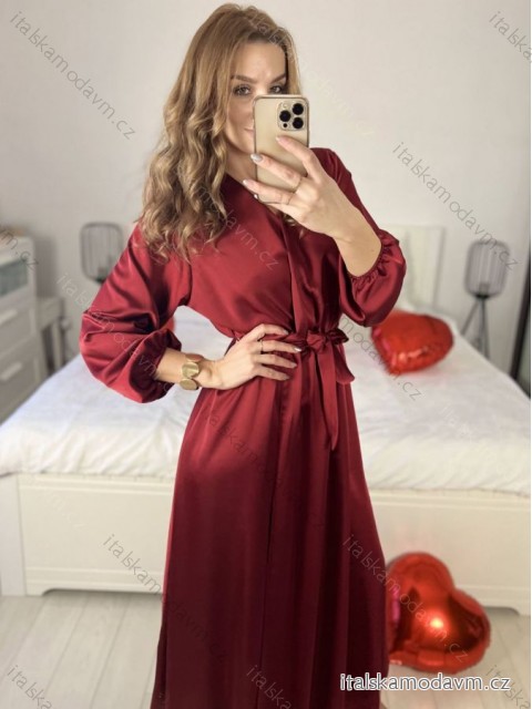 Šaty elegantní saténové dlouhý rukáv dámské (S/M.ONE SIZE) ITALSKÁ MÓDA IMM22HG3893/DU - šedá světlá - S/M