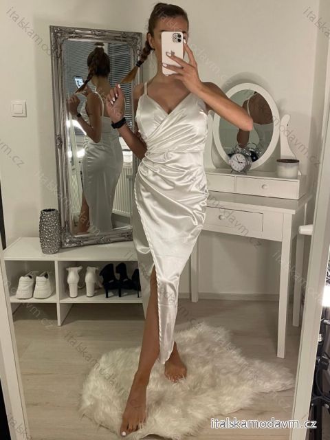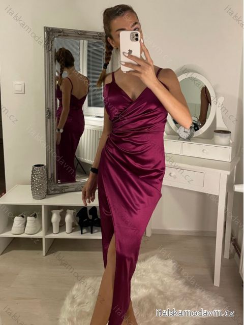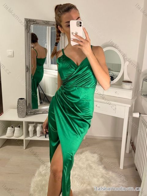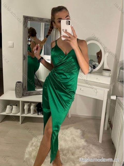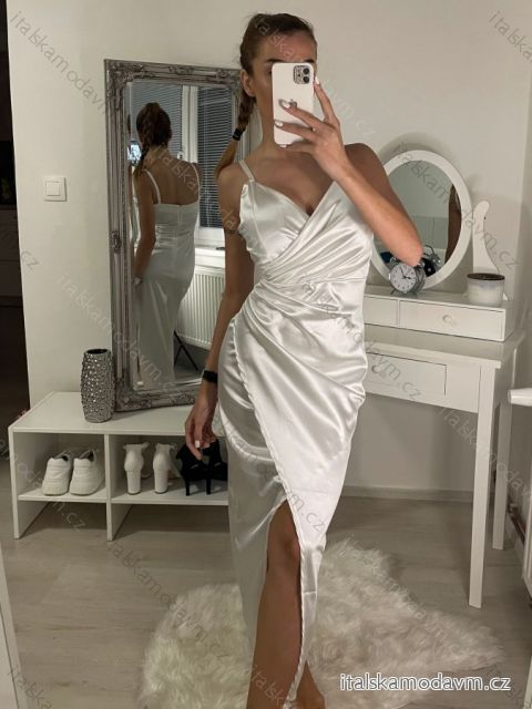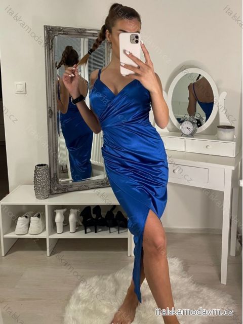 Šaty elegantní saténové společenské na ramínka dámské, vzadu zapínaní na zip, prsa s vycpávky,