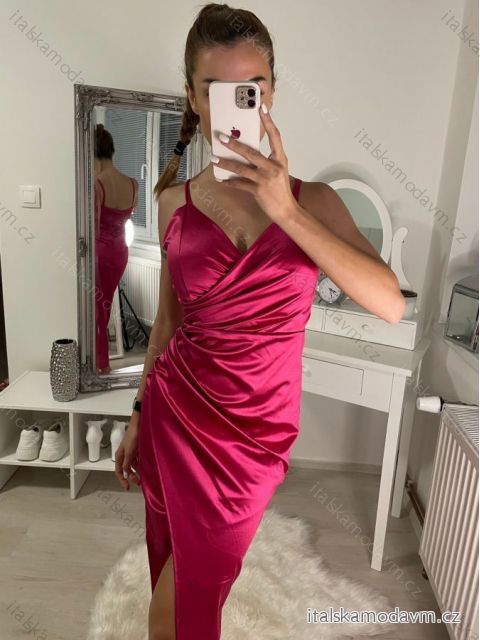 Šaty elegantní saténové společenské na ramínka dámské (S/M ONE SIZE) ITALSKÁ MÓDA IM322MONICA/DR - světle růžová, S/M