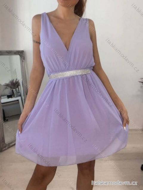 Šaty elegantné šifónové na ramienka dámske so spodničkou, s opaskom s kamienkami