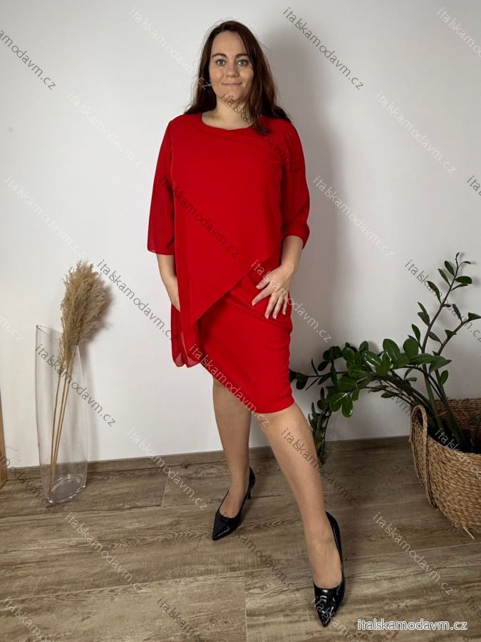 Šaty elegantní společenské 3/4 dlouhý rukáv dámské nadrozměr AMANDA (48/50/52 ONE SIZE) ITALSKÁ MÓDA IM425831/DUR 48/50/52 Černá