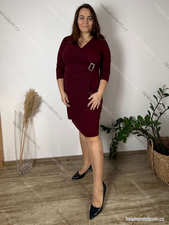 Šaty elegantní společenské 3/4 rukáv dámské nadrozměr (44-50) POLSKÁ MÓDA PMF25001-3/DU 48 vínová