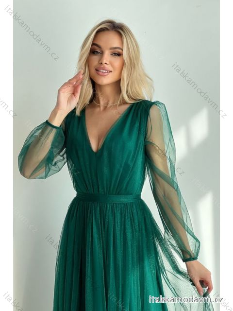 Šaty elegantní společenské dlouhý rukáv dámské (34-44) POLSKÁ MÓDA PMLBC23269-13A tmavo zelená 40