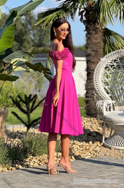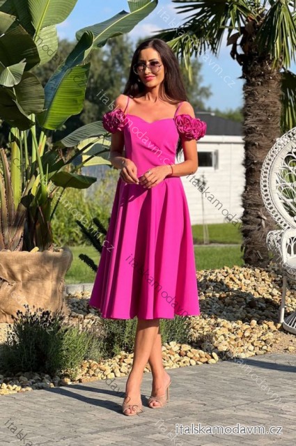 Šaty elegantní společenské na ramínka dámské (34-42) POLSKÁ MÓDA PMLEL24FLOWER3 růžová fuchsiová 34