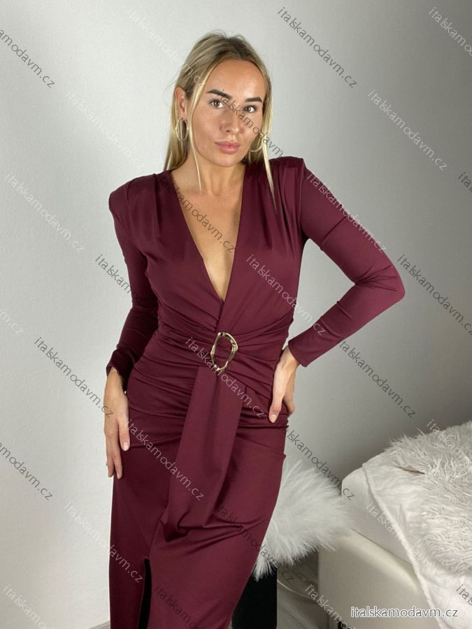 ZBOŽÍ (21988) > Šaty elegantný dlhý rukáv dámske (S/M/L ONE SIZE) TALIANSKA MÓDA IMM25M42722/DUR - hnedá - S/M/L