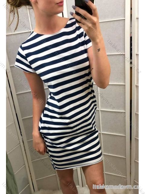 Šaty klasik krátky rukáv dlhé letné prúžok dámske (uni s / m) Talianska MODA IM718227/DR modrobílá