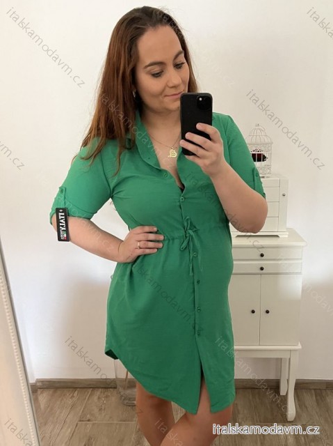 ZBOŽÍ (22545) > Šaty košeľové oversize krátky rukáv dámske (S/M/L ONE SIZE) TALIANSKA MÓDA IM424538/DR smaragdová S/M/L