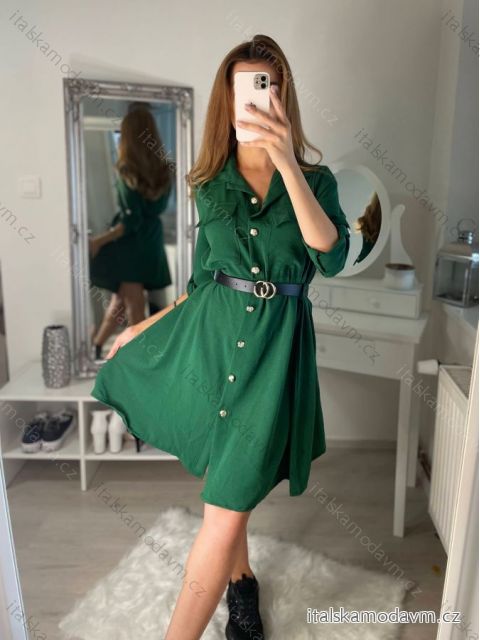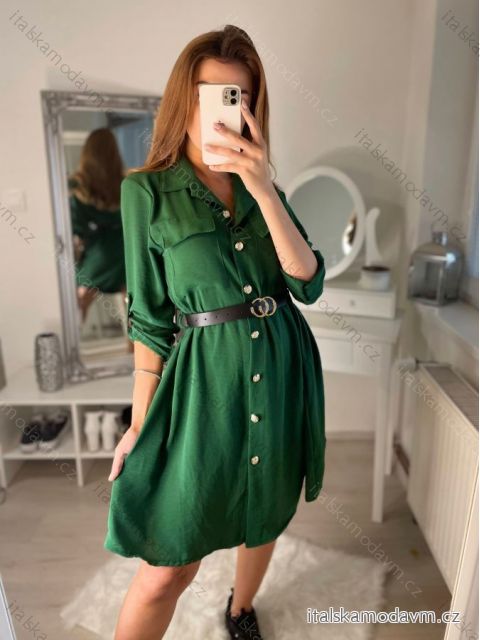 Šaty košeľové s opaskom dlhý rukáv dámske (S/M/L ONE SIZE) TALIANSKA MÓDA IMPBB22E9524/DR