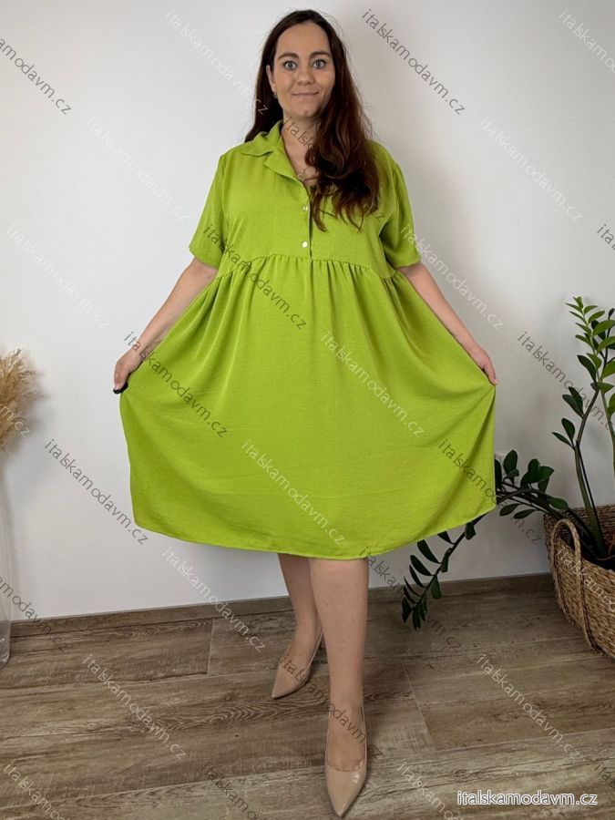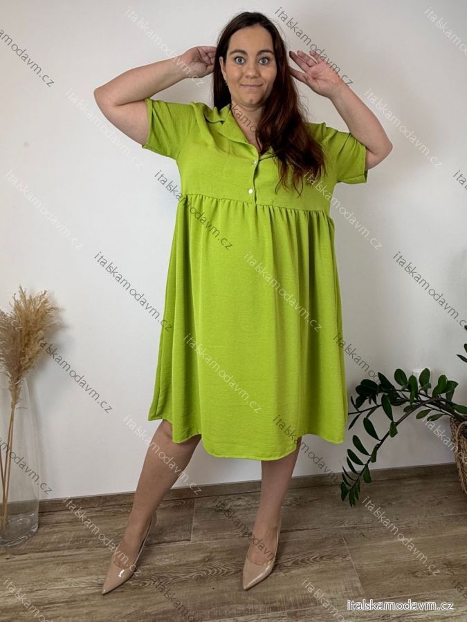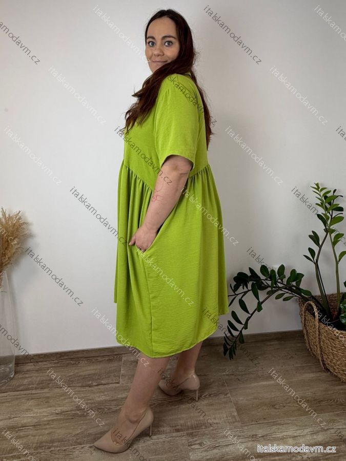 ZBOŽÍ (21991) > Šaty košilové s kapsami krátký rukáv dámské nadrozměr ADELE (54/56/58 ONE SIZE) ITALSKÁ MÓDA IM426073/DU 54/56/58 zelená limetková