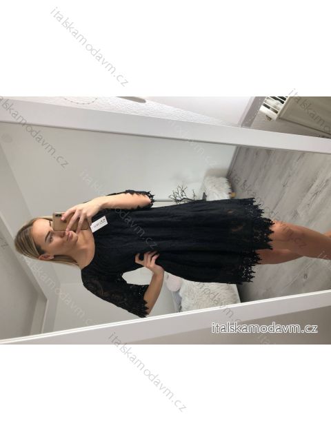 Šaty krajkové 3/4 rukáv dámske (L/XL ONE SIZE) TALIANSKA MÓDA IM422286/DR tmavo ružová