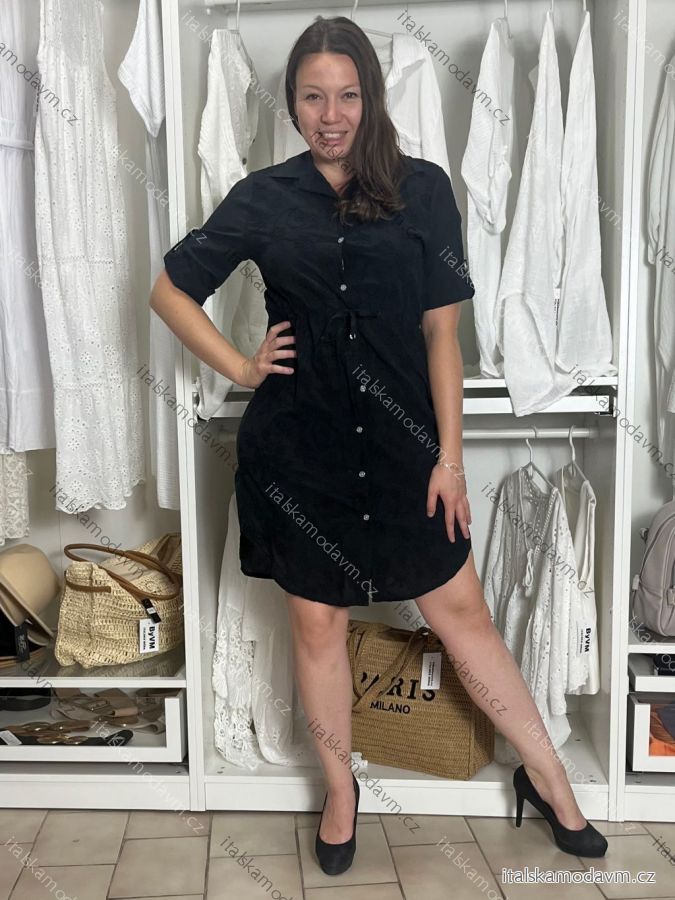 ZBOŽÍ (21731) > Šaty krátke košeľové 3/4 rukáv dámske (S/M/L ONE SIZE) TALIANSKA MÓDA IMD251111/DU S/M/L čierna