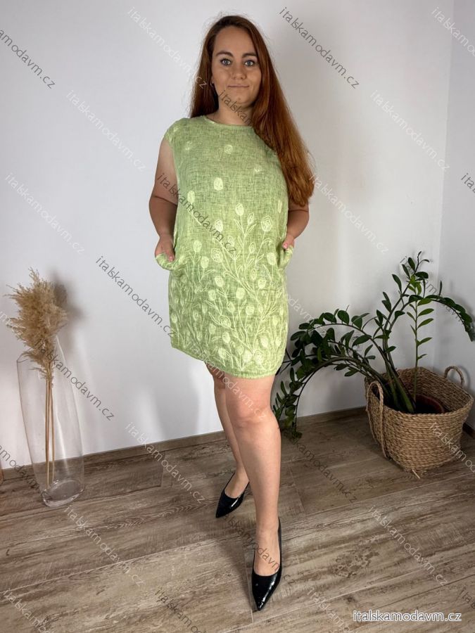 Šaty krátké lněné letní krátký rukáv dámské nadrozměr (M-L-XL-2XL-3XL) ITALSKÁ MÓDA IMSM251113/DU M světle zelená
