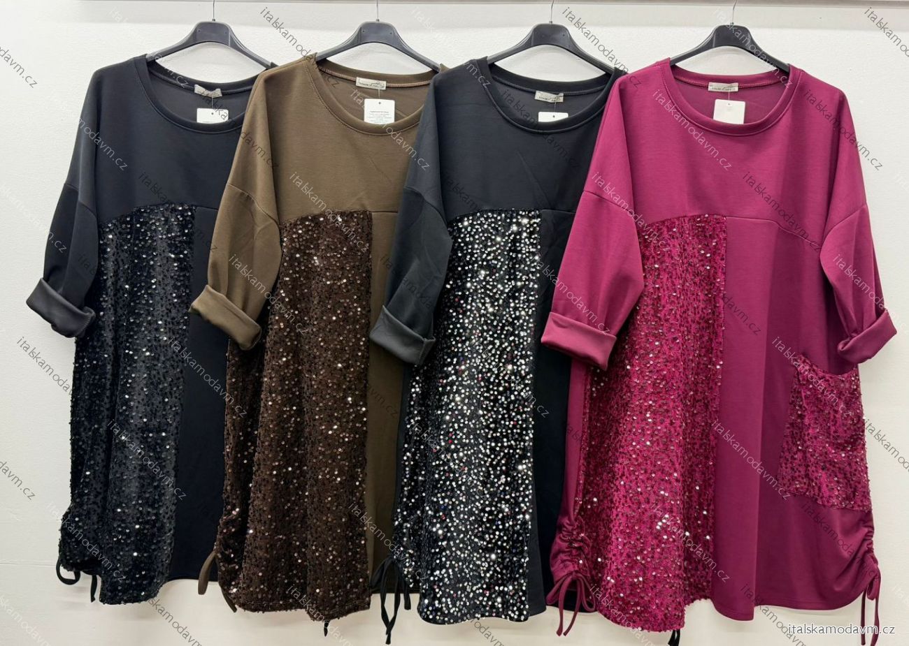 ZBOŽÍ (21605) > Šaty krátke maslové flitrové 3/4 dlhý rukáv dámske nadrozmer (54/56/58 ONE SIZE) TALIANSKA MÓDA IM425818