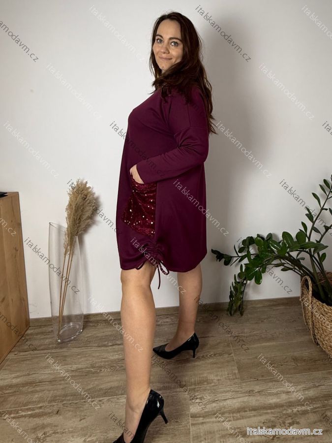 ZBOŽÍ (21904) > Šaty krátke maslové flitrové 3/4 dlhý rukáv dámske nadrozmer (54/56/58 ONE SIZE) TALIANSKA MÓDA IM425818