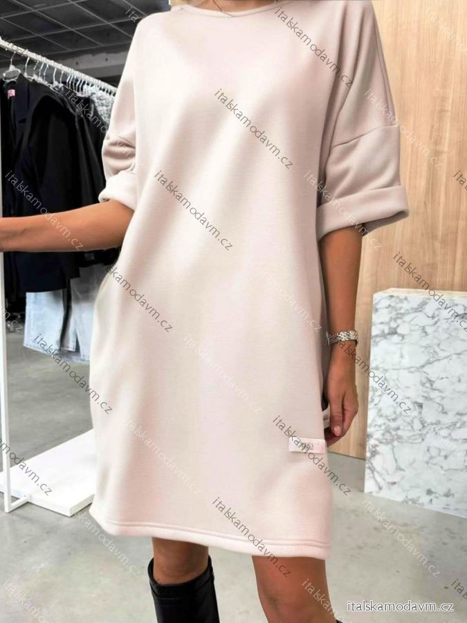 Šaty krátke oversize 3/4 dlhý rukáv dámske (M/L/XL ONE SIZE) TALIANSKA MÓDA IMD25009