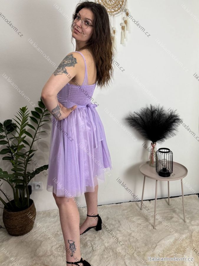 Šaty krátké společenské třpytivé na ramínka dámské (S/M ONE SIZE) ITALSKÁ MÓDA IMC24462/DUR světle fialová S/M/L
