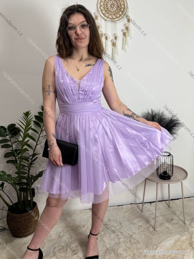 ZBOŽÍ (22207) > Šaty krátké společenské třpytivé na ramínka dámské (S/M ONE SIZE) ITALSKÁ MÓDA IMC24462/DUR světle fialová S/M/L