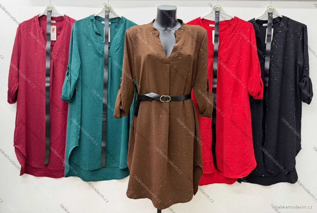 Šaty krátke voľnočasové s opaskom 3/4 dlhý rukáv dámske nadrozmer (46/48/50 ONE SIZE) TALIANSKA MÓDA IM425816