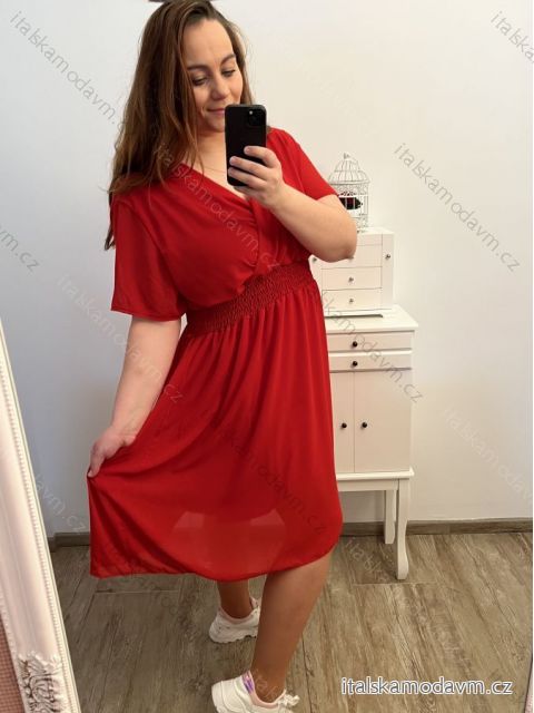 Šaty krátky rukáv dámske nadrozmer (2XL/3XL ONE SIZE) TALIANSKA MóDA IM423MILANO/DU 2XL/3XL petrolejová