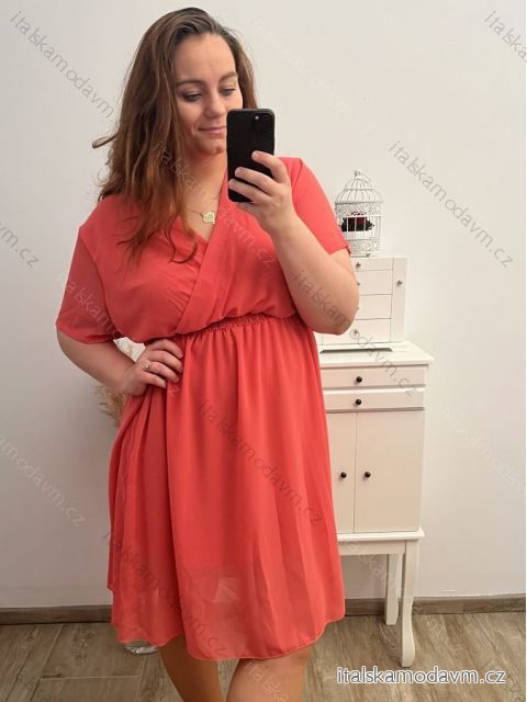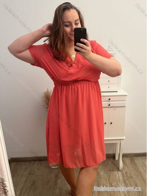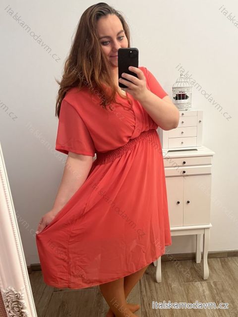 ZBOŽÍ (22801) > Oblečení dámské (18150) > Šaty (9668) > Šaty krátký rukáv dámské nadrozměr (2XL/3XL ONE SIZE) ITALSKá MóDA IM423MILANO/DUR lososová