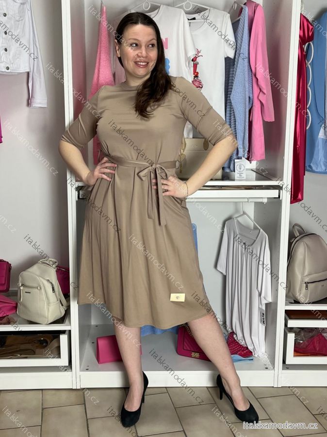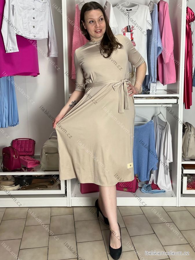 Šaty letné 3/4 dlhý rukáv dámske (S/M/L ONE SIZE) TALIANSKA MÓDA IMD26018/DUR S/M/L béžová