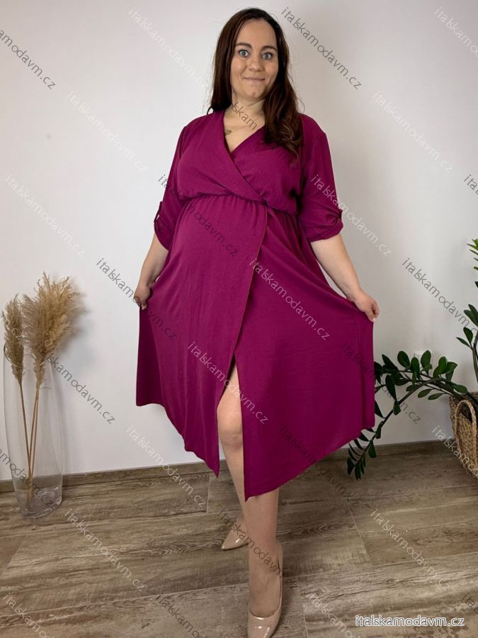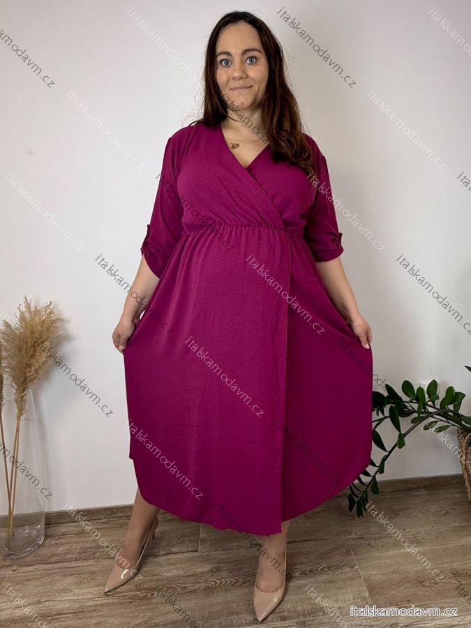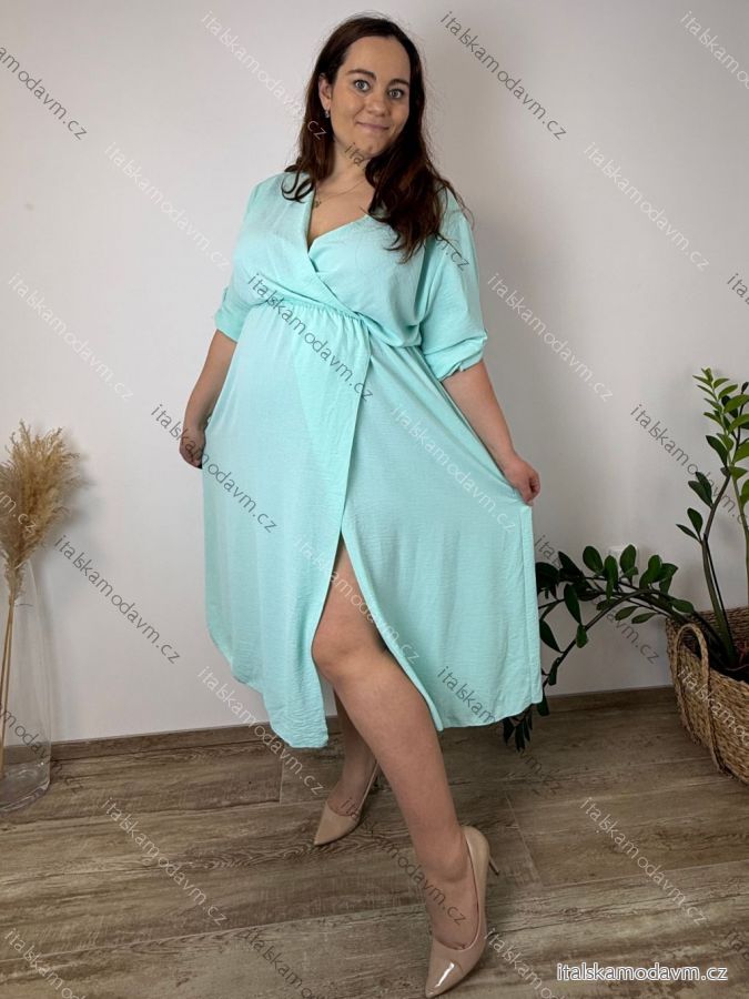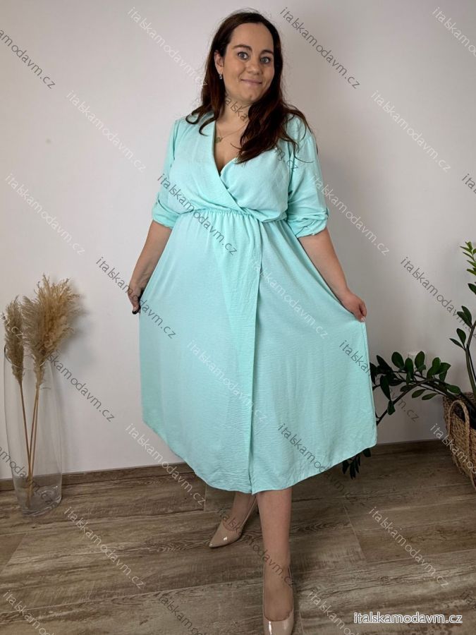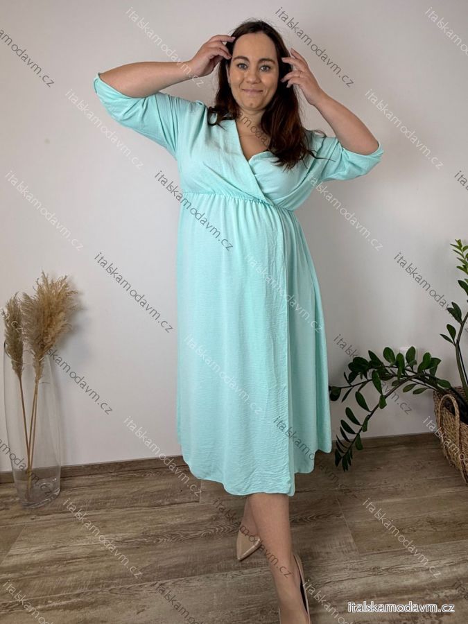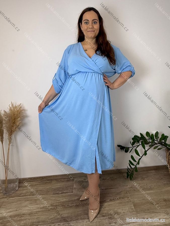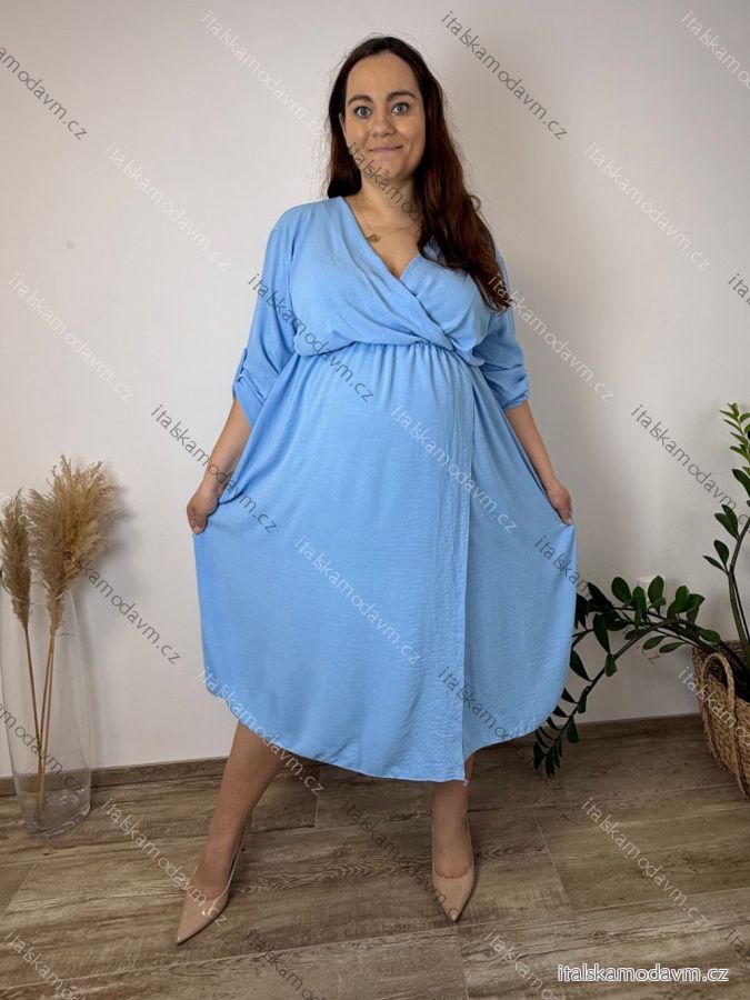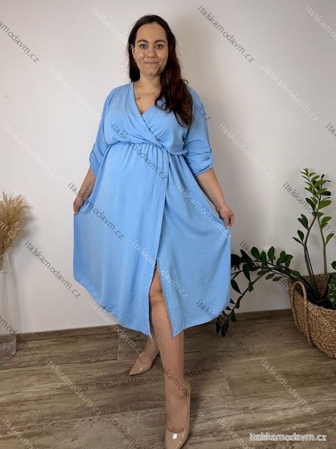 Šaty letné elegantní s 3/4 rukávem dámske nadrozmer RADKA (50/52/54 ONE SIZE) TALIANSKA MÓDA IM4260026/DUR 50/52/54 svetlo modrá