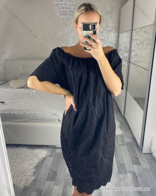 ZBOŽÍ (21908) > Šaty letné madeirové krátky rukáv dámske (S/M ONE SIZE) TALIANSKA MÓDA IM423271/DUR čierna S/M