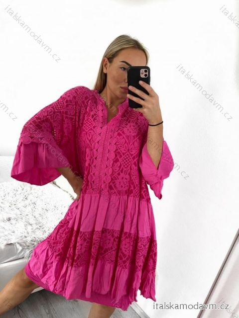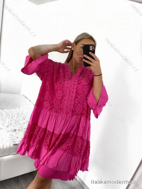 Šaty letné krajkové krátky rukáv dámske nadrozměr (2XL/3XL/4XL ONE SIZE) TALIANSKA MÓDA IMBM23ELISA/DU