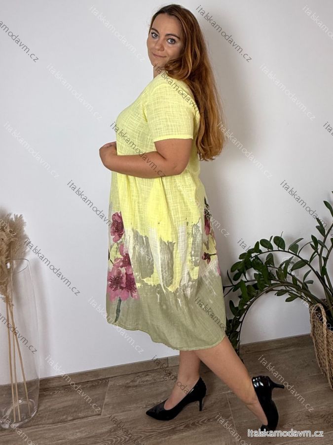 Šaty letné krátky rukáv dámske nadrozmer FLOO (48/50/52 ONE SIZE) TALIANSKA MÓDA IM425421/DU žlutá