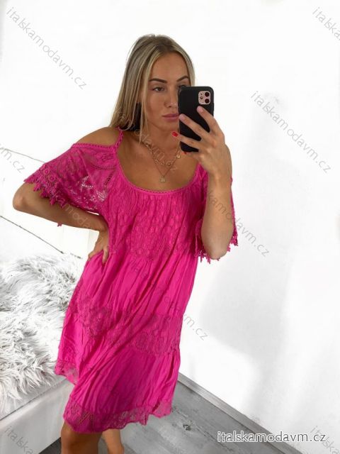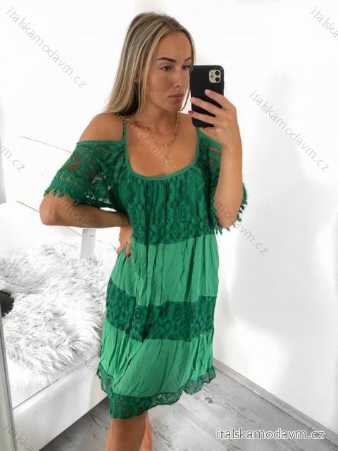 Šaty letné s čipkou na ramienka dámske (S/M ONE SIZE) TALIANSKA MÓDA IMWB232841/DU S/M zelená