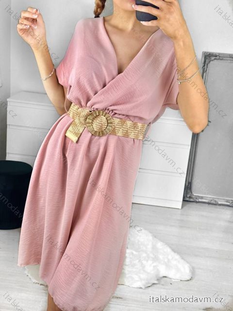 Šaty letní s páskem krátký rukáv dámské (S/M/L ONE SIZE) ITALSKÁ MÓDA IM323065/DU M / L staroružová