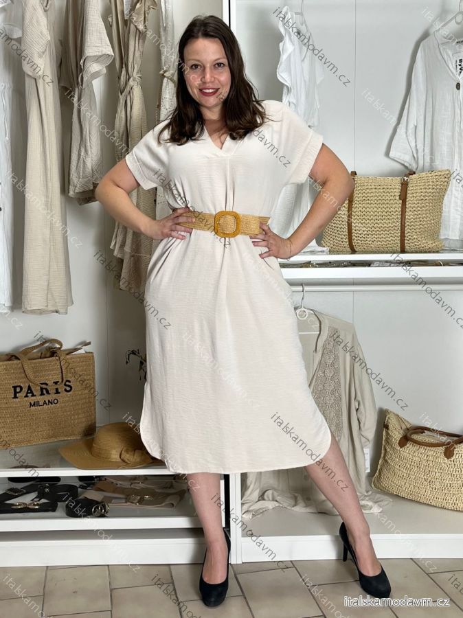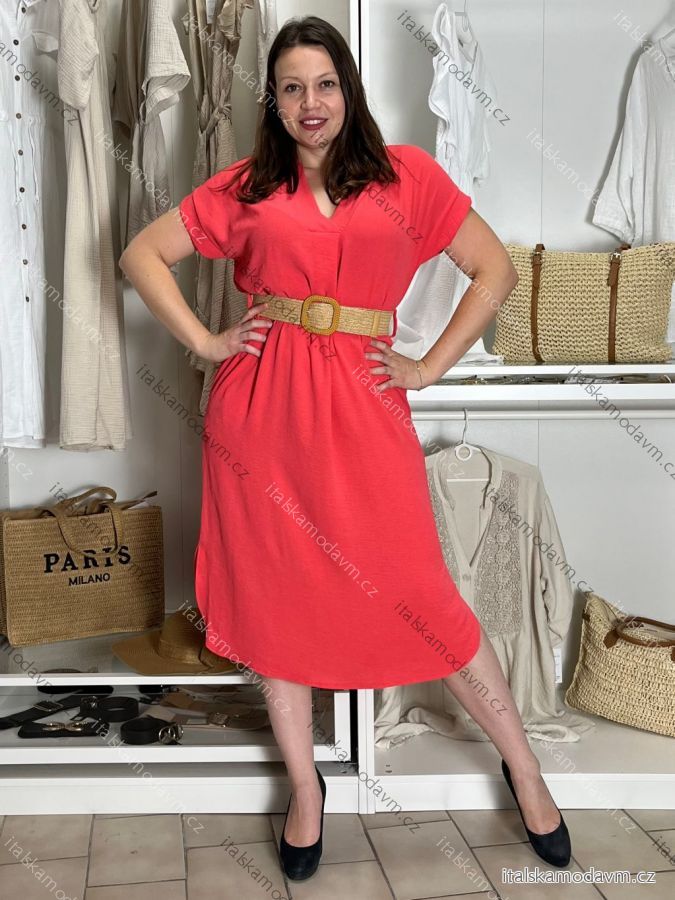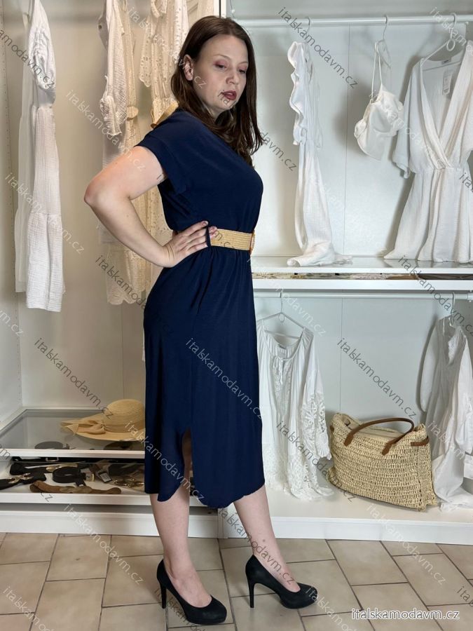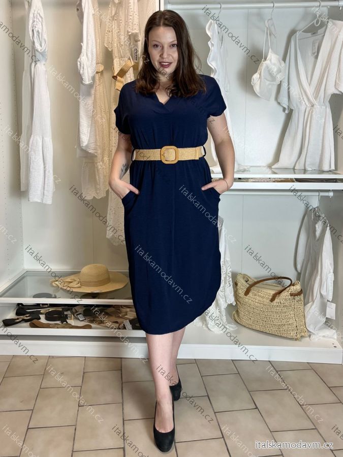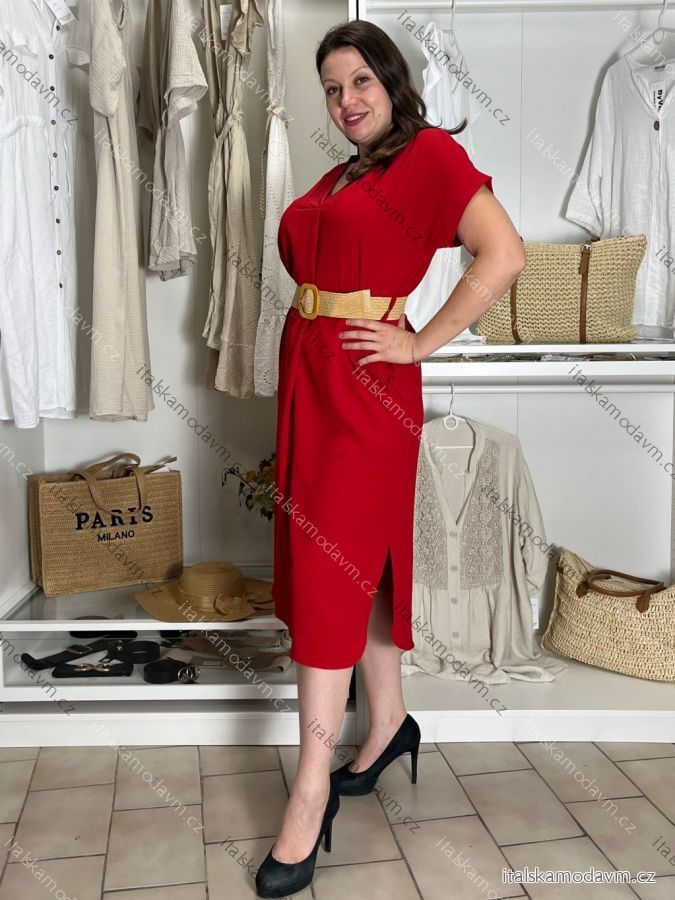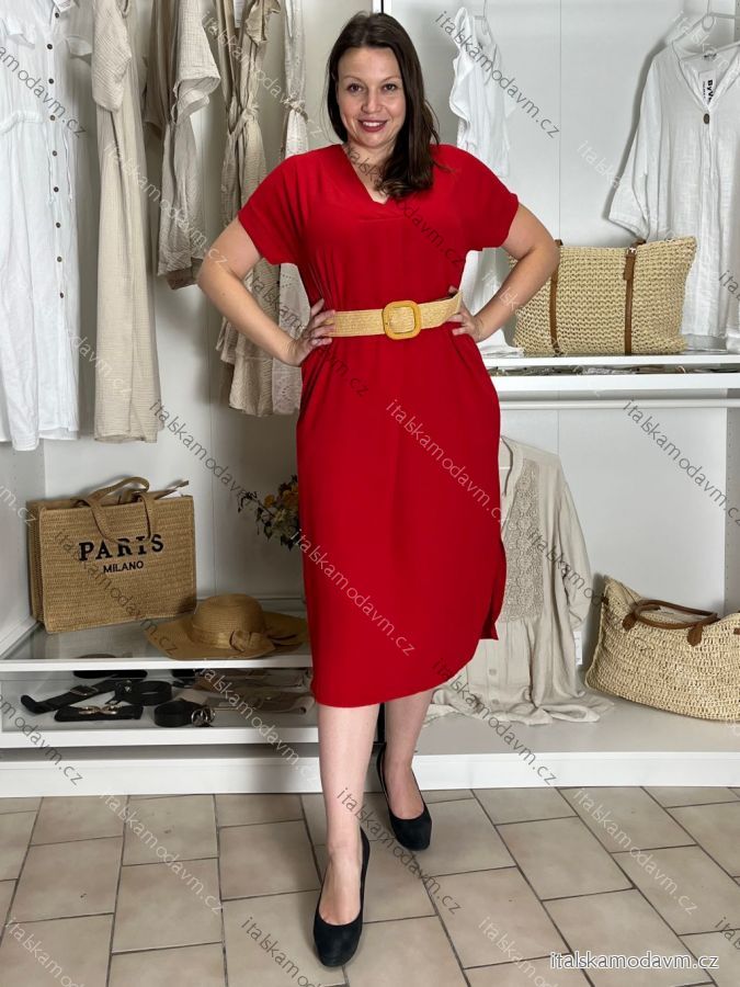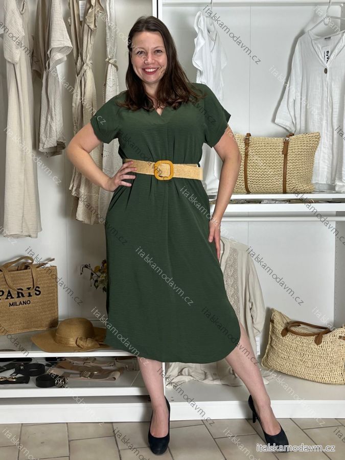 Šaty letné s opaskom krátky rukáv dámske nadrozmer KRYSTINA (40/42/44 ONE SIZE) TALIANSKA MÓDA IM425306