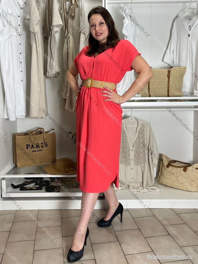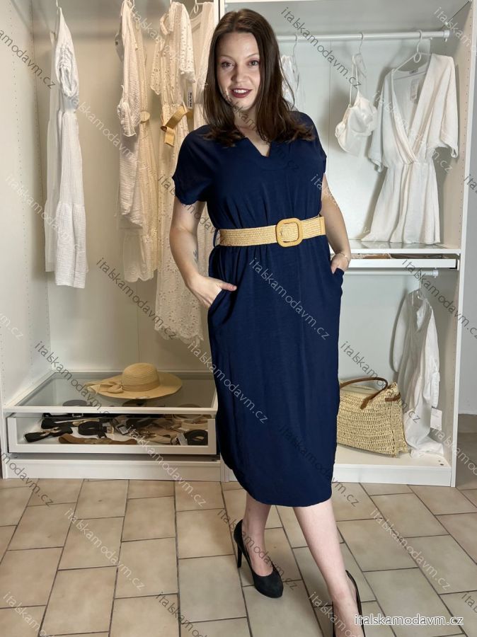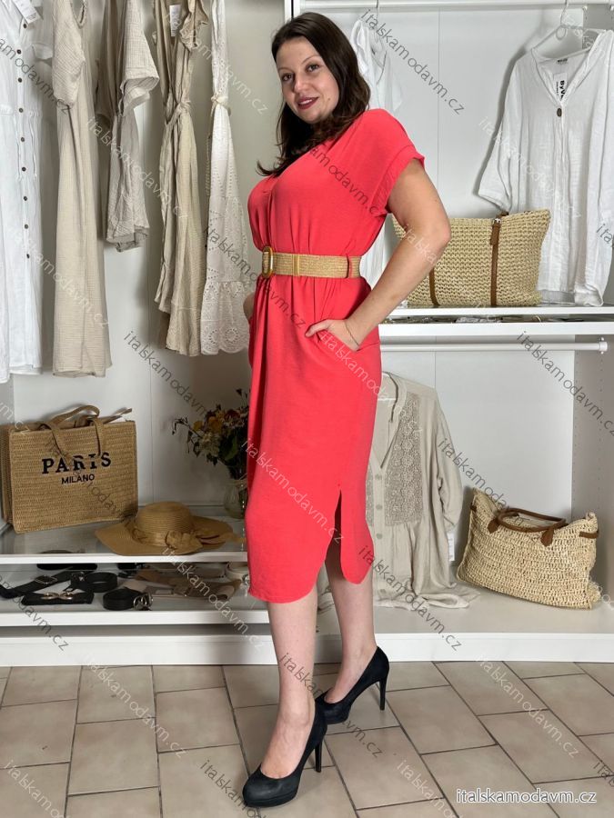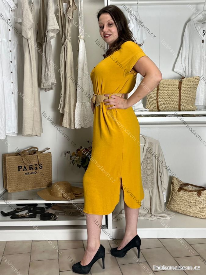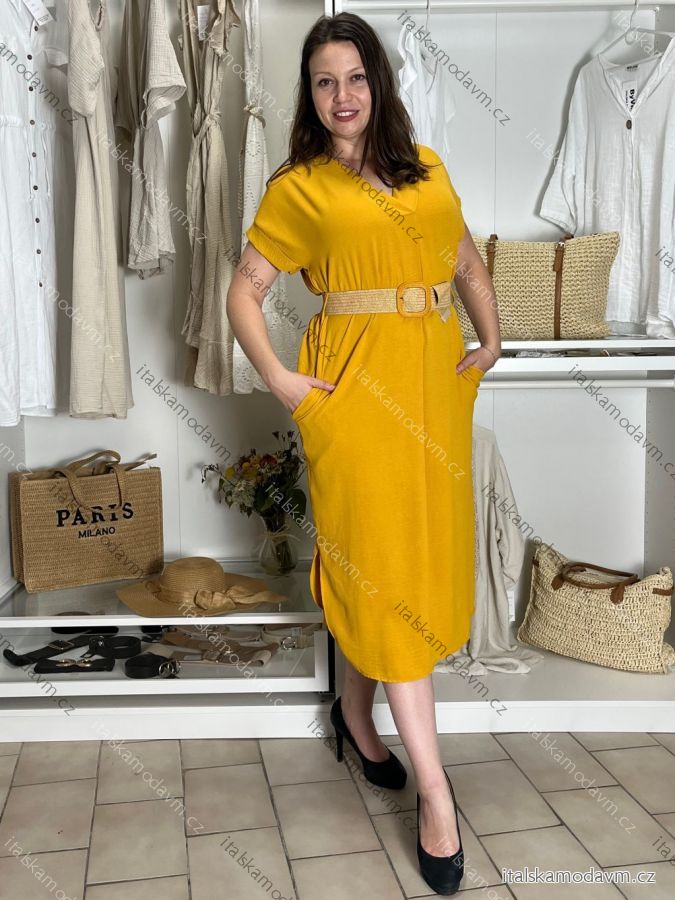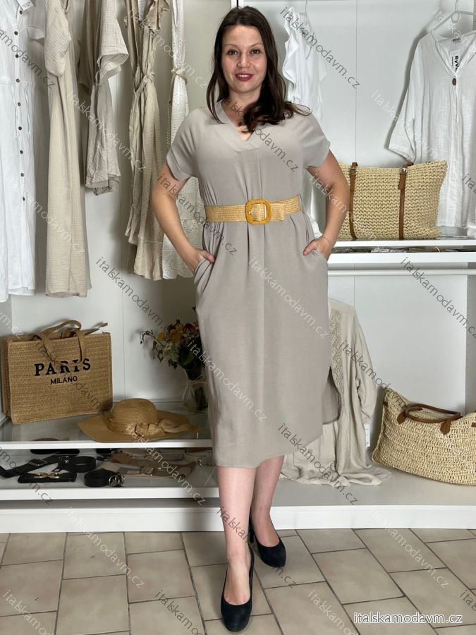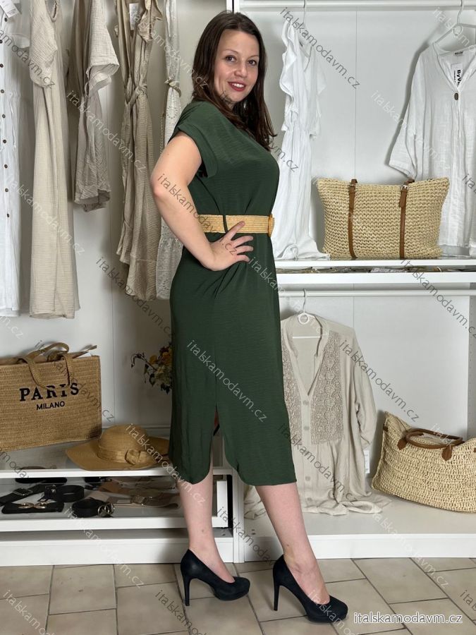 Šaty letné s opaskom krátky rukáv dámske nadrozmer KRYSTINA (40/42/44 ONE SIZE) TALIANSKA MÓDA IM425306