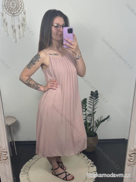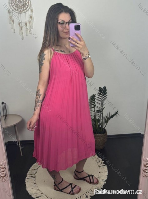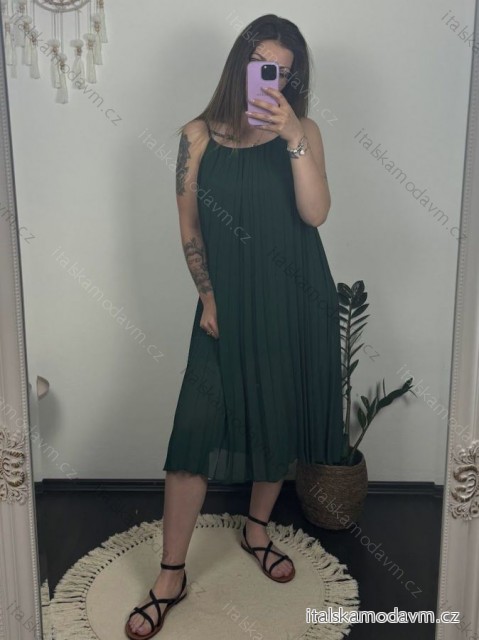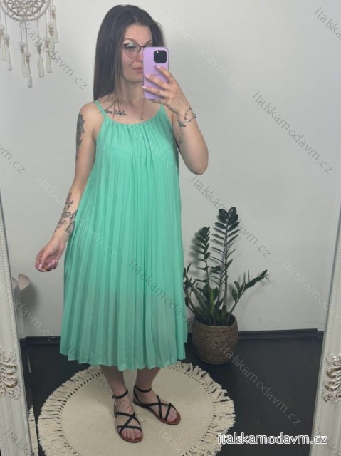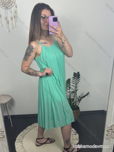 Šaty letní šifonové skládané na ramínka dámské (S/M/L/XL ONE SIZE) ITALSKÁ MÓDA IMC22468/DR M / L petrolejová