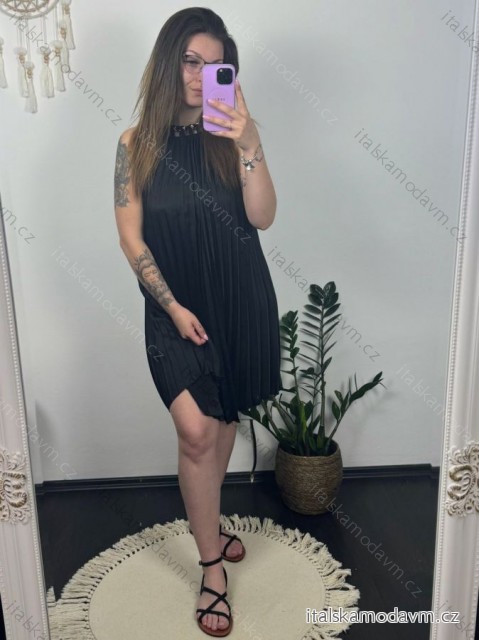 Šaty letné skladané bez rukávov dámske (S/M/L ONE SIZE) TALIANSKA MÓDA IMWGB24029 čierna S / M