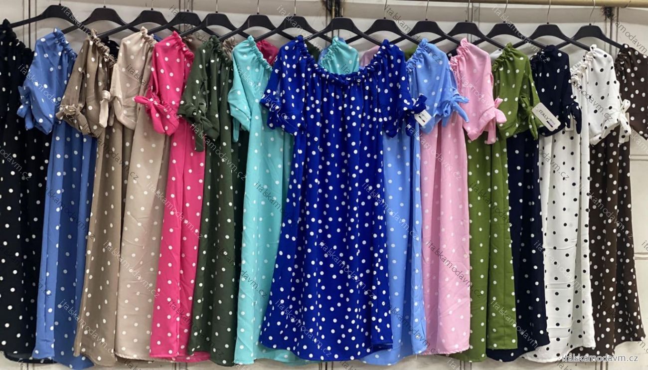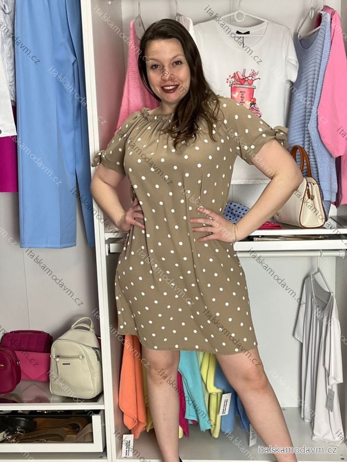 Šaty letní carmen puntíkaté krátký rukáv dámské nadrozměr EVE (40/42/44 ONE SIZE) ITALSKÁ MÓDA IMC26141