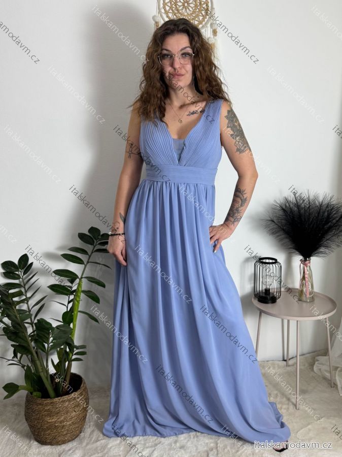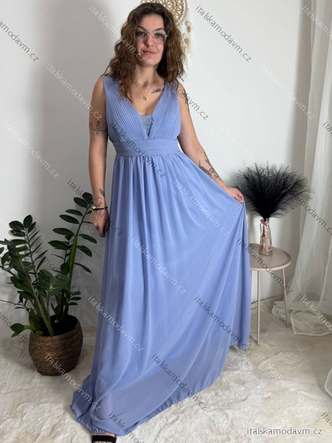 Šaty letní dlouhé elegantní bez rukávu dámské (42/44/46 ONE SIZE) ITALSKÁ MÓDA IMPSH2480566A/DUR 44/46 světle modrá