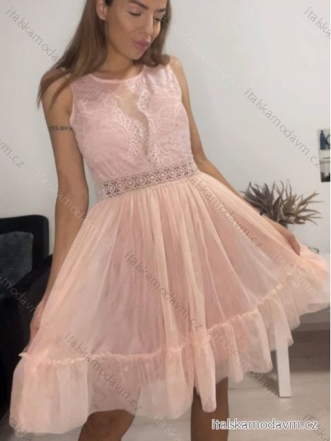Šaty letní elegantní bez rukávu krajkované dámské (S/M ONE SIZE) ITALSKá MóDA IMM22FL22540/DR Modrá světlá S/M