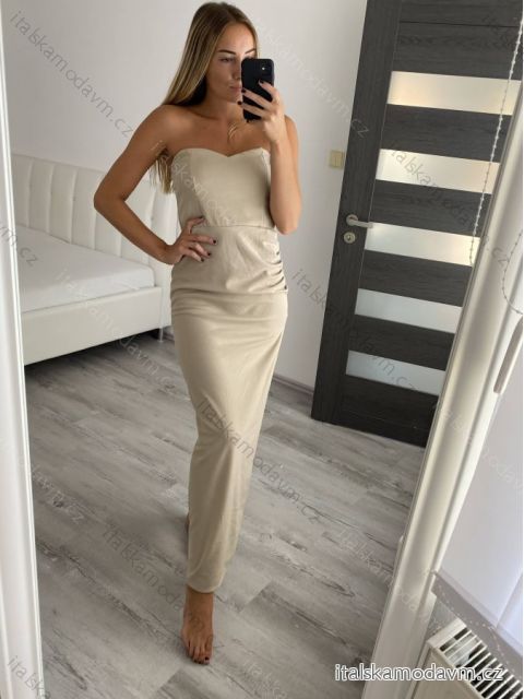 ZBOŽÍ (21828) > Oblečení dámské (17709) > Šaty (9233) > Šaty společenské (2828) > Šaty plesové dlouhé (1818) > Šaty letní elegantní na ramínka žabičkované dámské (S/M ONE SIZE) ITALSKÁ MÓDA IMD22564/DR S/M béžová