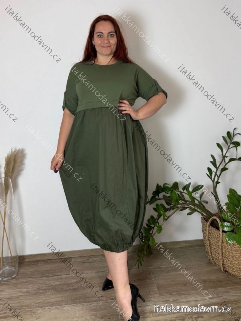 ZBOŽÍ (21838) > Šaty letní krátký rukáv dámské nadrozměr (46/48/50 ONE SIZE) ITALSKÁ MÓDA IMSM25131/DU 48/50 zelená khaki