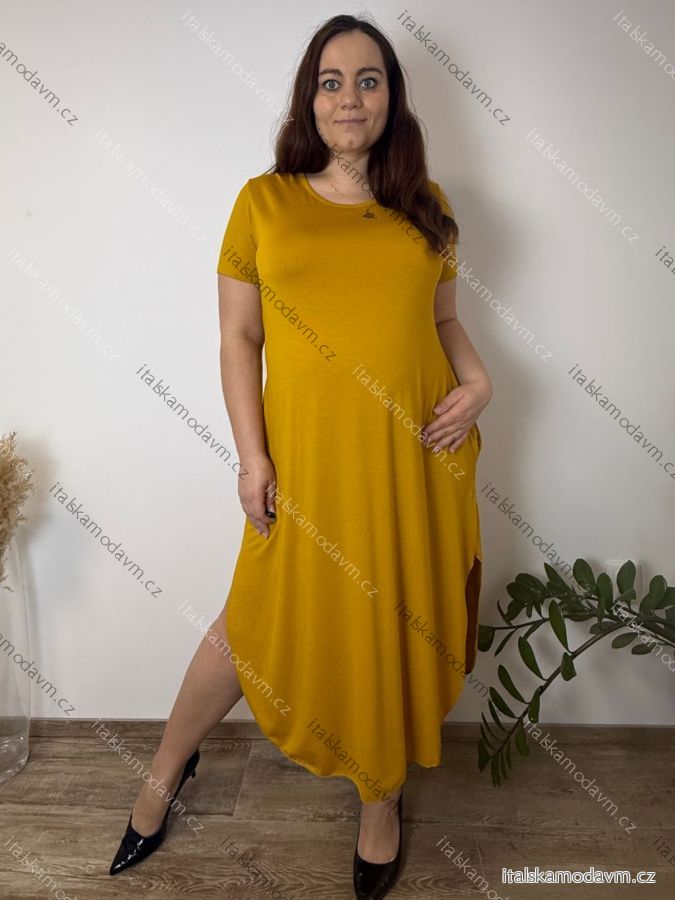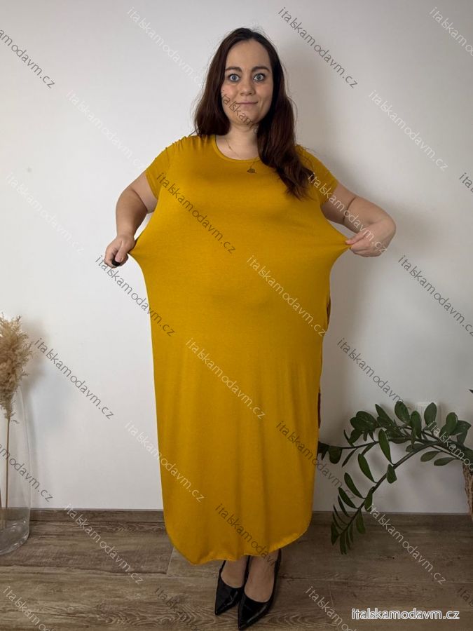 Šaty letní oválné krátký rukáv dámské nadrozměr (50/52/54 ONE SIZE) ITALSKÁ MÓDA IM425025