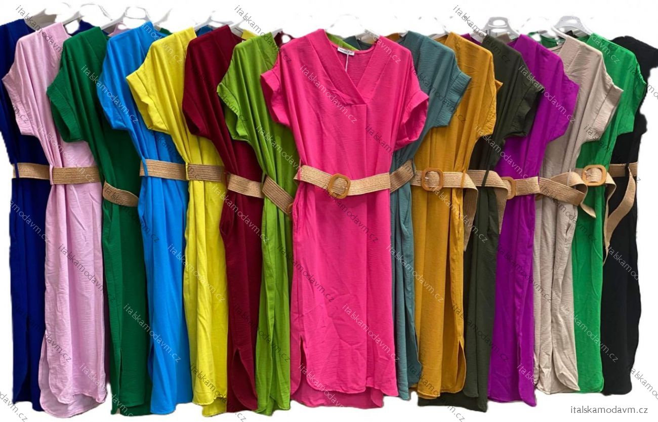 Šaty letní s páskem krátký rukáv dámské (S/M/L ONE SIZE) ITALSKÁ MÓDA IMC25203