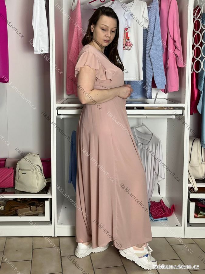 Dlouhé letní šifonové šaty s krátkým rukávem