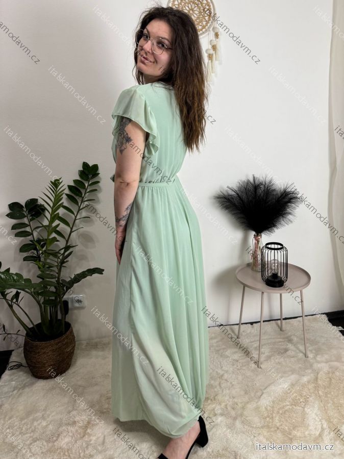Šaty letní šifonové krátky rukáv dámske AMANDA (S/M/L ONE SIZE) TALIANSKA MóDA IM42600014/DUR Smaragdová S/M/L