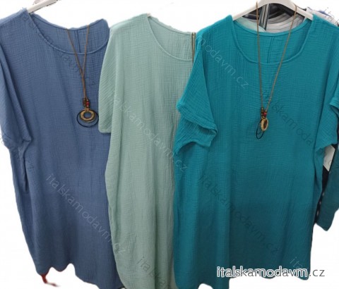 Šaty letný mušelín krátky rukáv nadrozměr dámske (2XL/3XL/4XL ONE SIZE) TALIANSKA MÓDA IM423MUSE